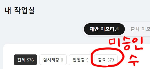 미승인을 573번 적립했지만