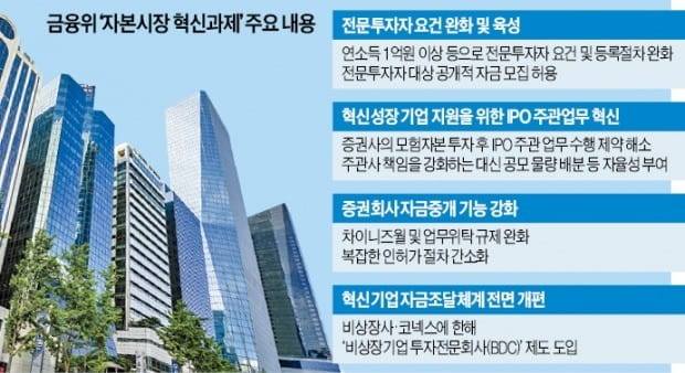 비상장 혁신기업의 자금 조달을 원활하게 하기 위한 비상장기업 투자전문회사(BDC)가 도입된다. BDC는 투자 대상을 정하지 않은 상태에서 공모나 상장을 먼저 한 뒤 비상장 기업과 코넥스 기업에 투자하는 회사이다. 현재 개인들의 비상장주식 거래는 사설 장외거래업체를 통해 이루어져 왔다. 일부 부유층이나 법인들만이 증권사 PB를 통해 거래할 수 있었으나 내년부터는 개인들이 합법적으로 거래할 수 있는 중소형 증권사가 만들어진다. 비상장주식의 투명하고 건전한 거래를 위해 한 단계 더 나아가는 것만으로도 의미가 크다고 본다.