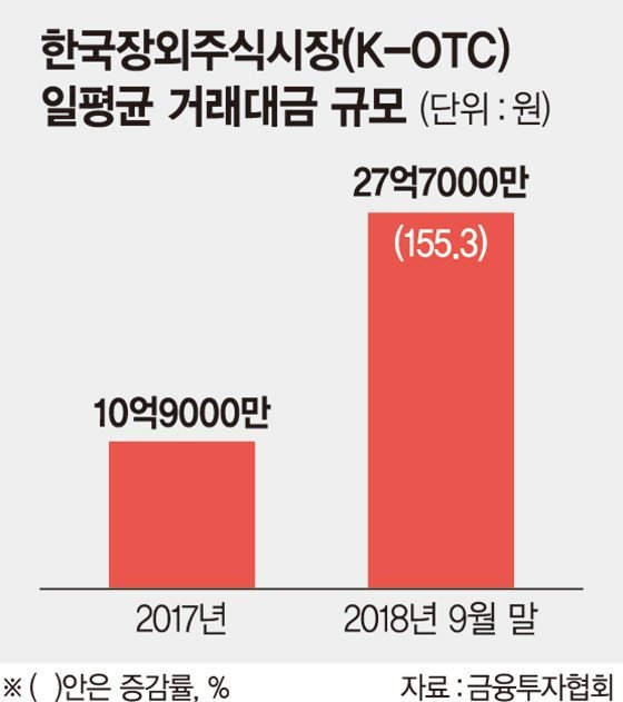 그동안 코스피, 코스닥, 코넥스 시장에서 대주주 주식거래에 대해서만 양도소득세를 부과했지만 K-OTC 시장은 일반투자자까지 양도소득세를 부과해왔다. 올해부터 그룹사를 제외한 대부분의 중소기업 양도세가 면제되면서 상장을 준비중인 인기 기업에 대한 투자가 활발해졌다. 금융투자협회에 따르면 하루평균 거래금액이 지난해에 비해 6배 증가했다고 하니 올해 장외시장이 양도세 면세효과를 톡톡히 보았다고 볼 수 있다.