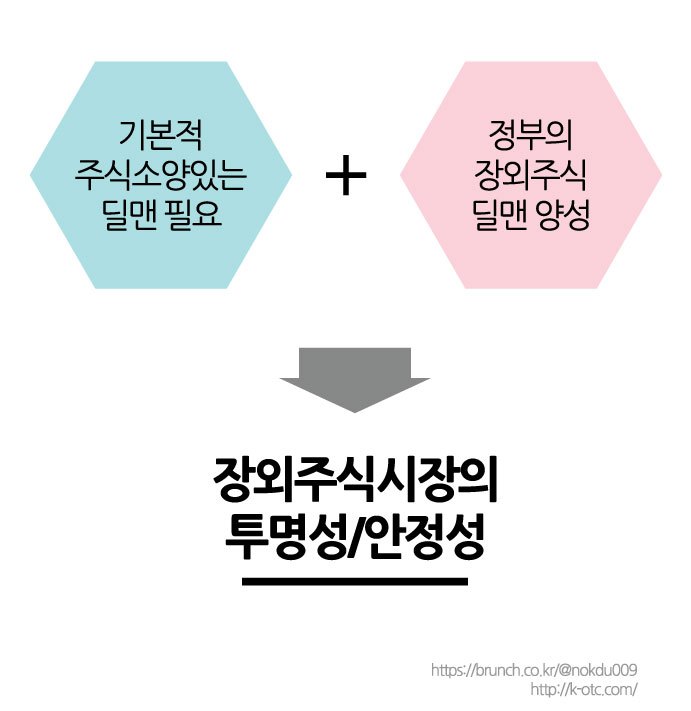 분명 장외주식 시장은 거래소, 코스닥 다음으로 큰 시장을 이루고 있다는 것이 엄연한 사실이기에 시급히 장외주식 거래시장에 딜맨을 인정하는 국가적 차원의 관리감독을 만들 필요가 있다는 점을 필자는 다시금 말씀드리는 바입니다.