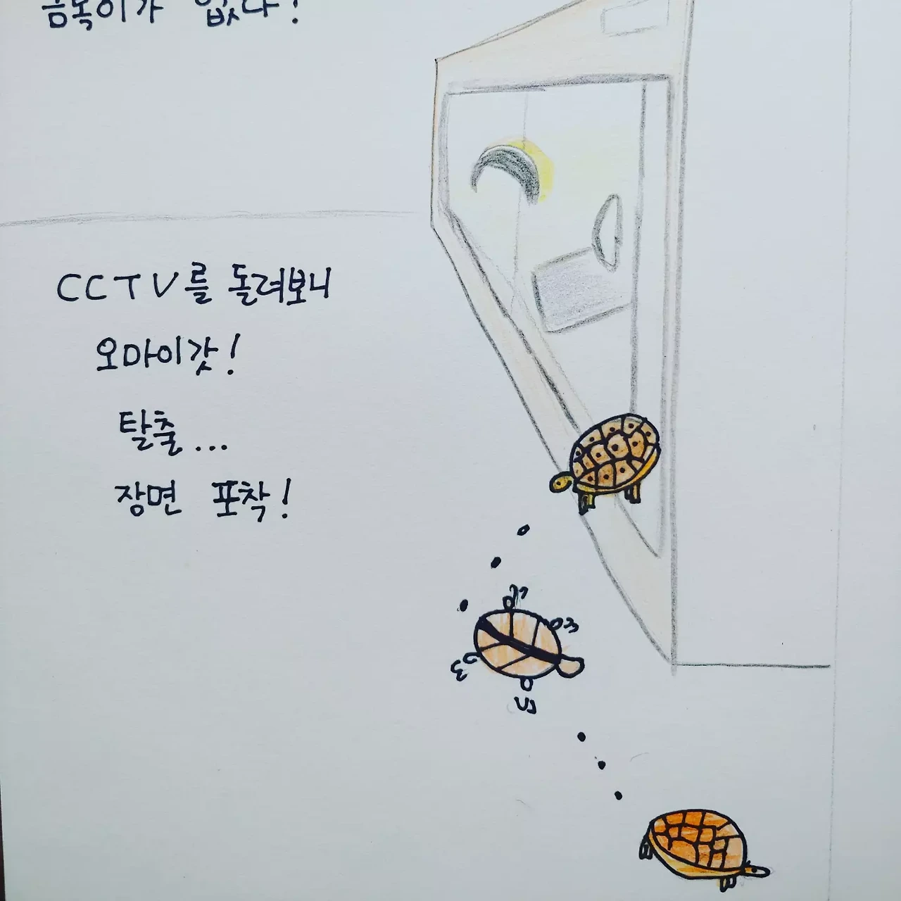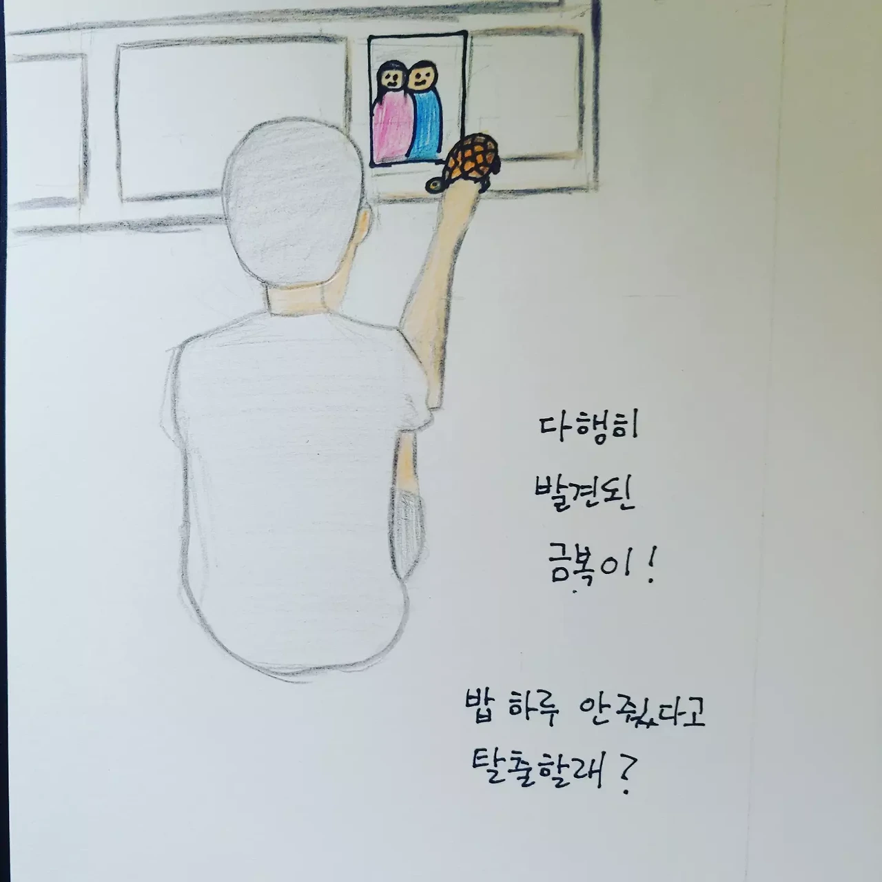 겨우 일박 여행이어서 다음날 돌아와 밥주려고 안주고 갔더니 그새를 못참고 탈출한 금복이 녀석!!!!