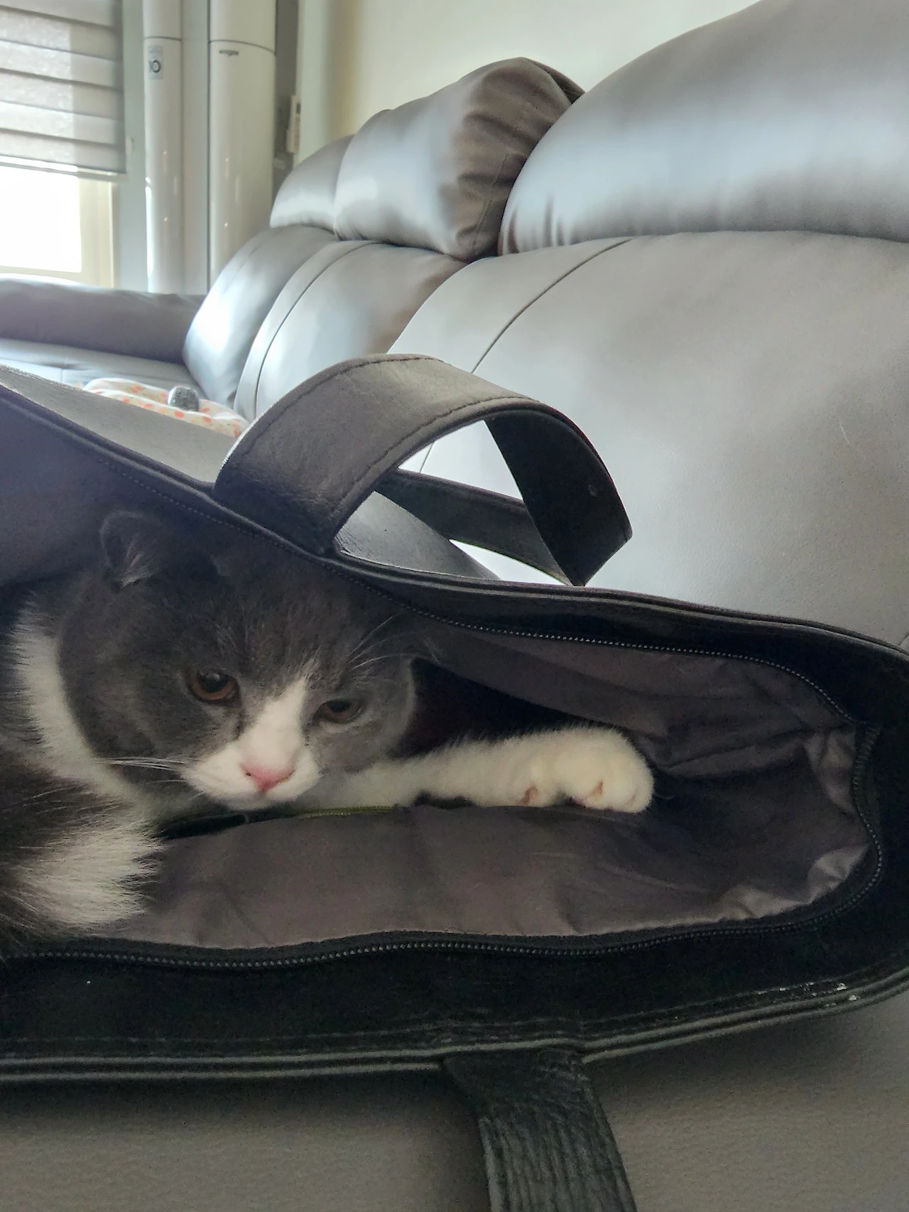 출근 가방 속 숨어있는 냥이