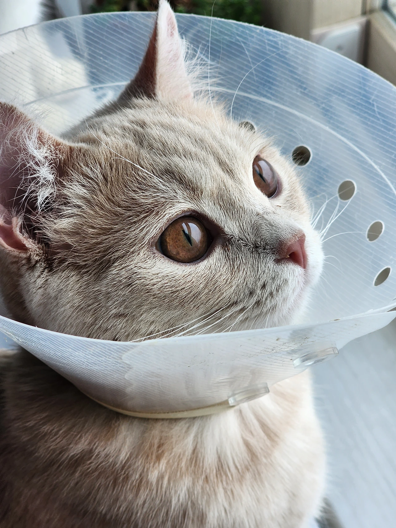 하지만 5일 정도 후가 되자 고깔이 끝나는 지점에 생식기를 갖다 대고 긴 혀로 핥는 동작이 가능해진 것이다. 첫째는 그렇게까지 하지는 않았던 터라 전혀 생각지도 못한 일이었다. 하지만 다행히 수술 부위까지 핥지는 못하는 걸로 보였다.