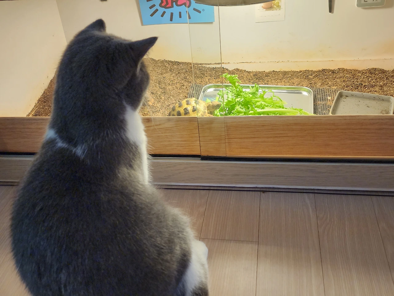 나의 하루는 고양이와 거북이를 돌보면서 시작한다. 일어나자마자 거북이 집으로 간다. 네 마리 중 세 마리의 거북이들은 이미 일어나 있다.