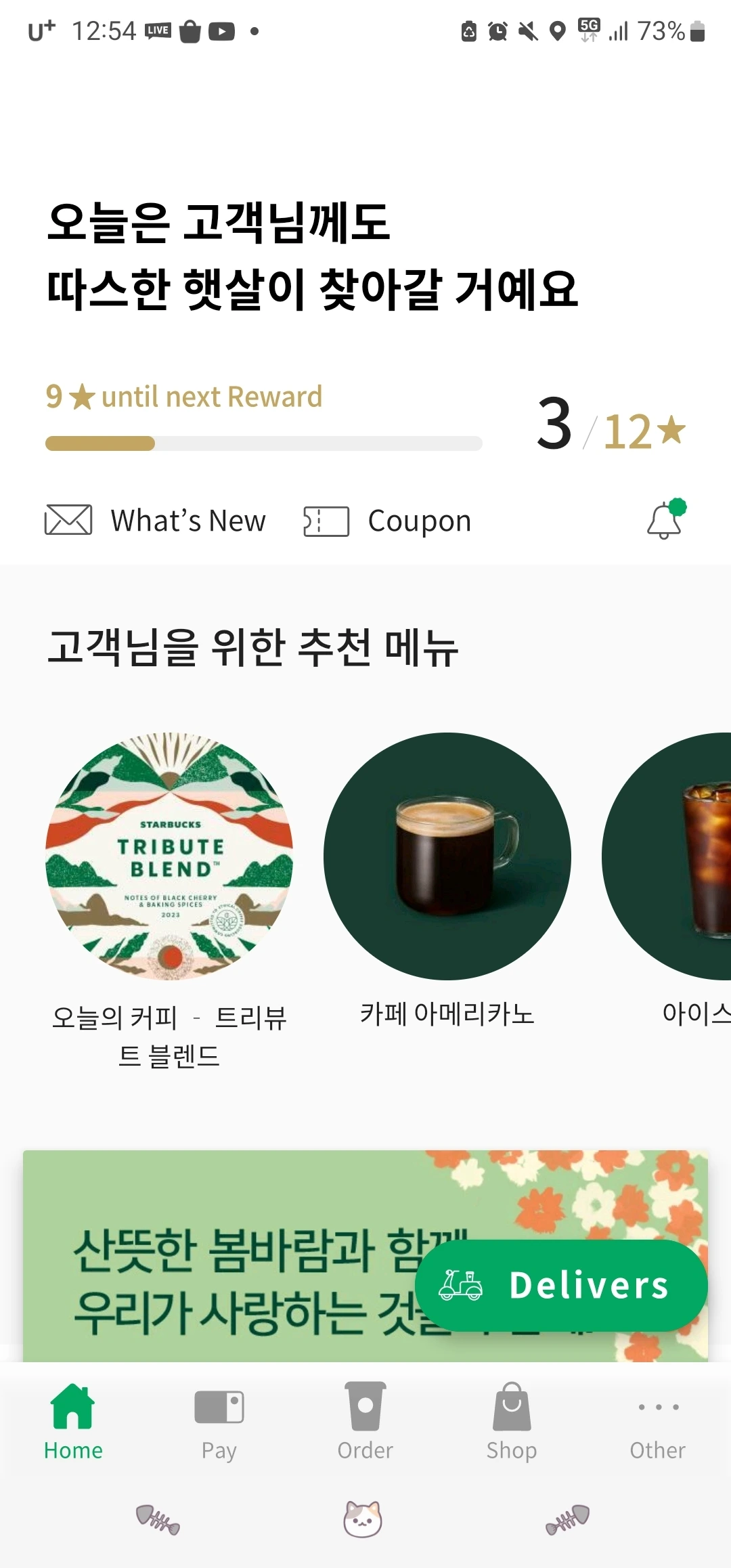 달달한 걸로 당충전을 해서라도 힘을 내보자. 오늘은 중등 수업까지 있는 날이니. 스타벅스 앱을 열었더니
