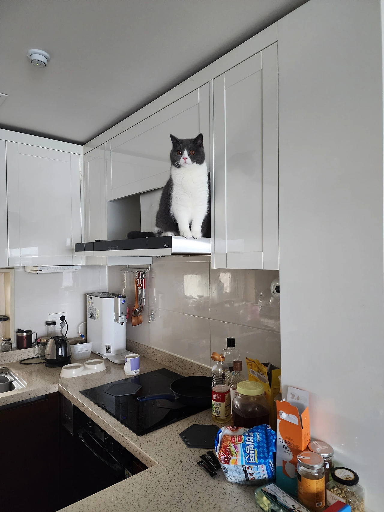 며칠 전에는 가스레인지 후드 위에 올라가 앉아 있기도 했다.