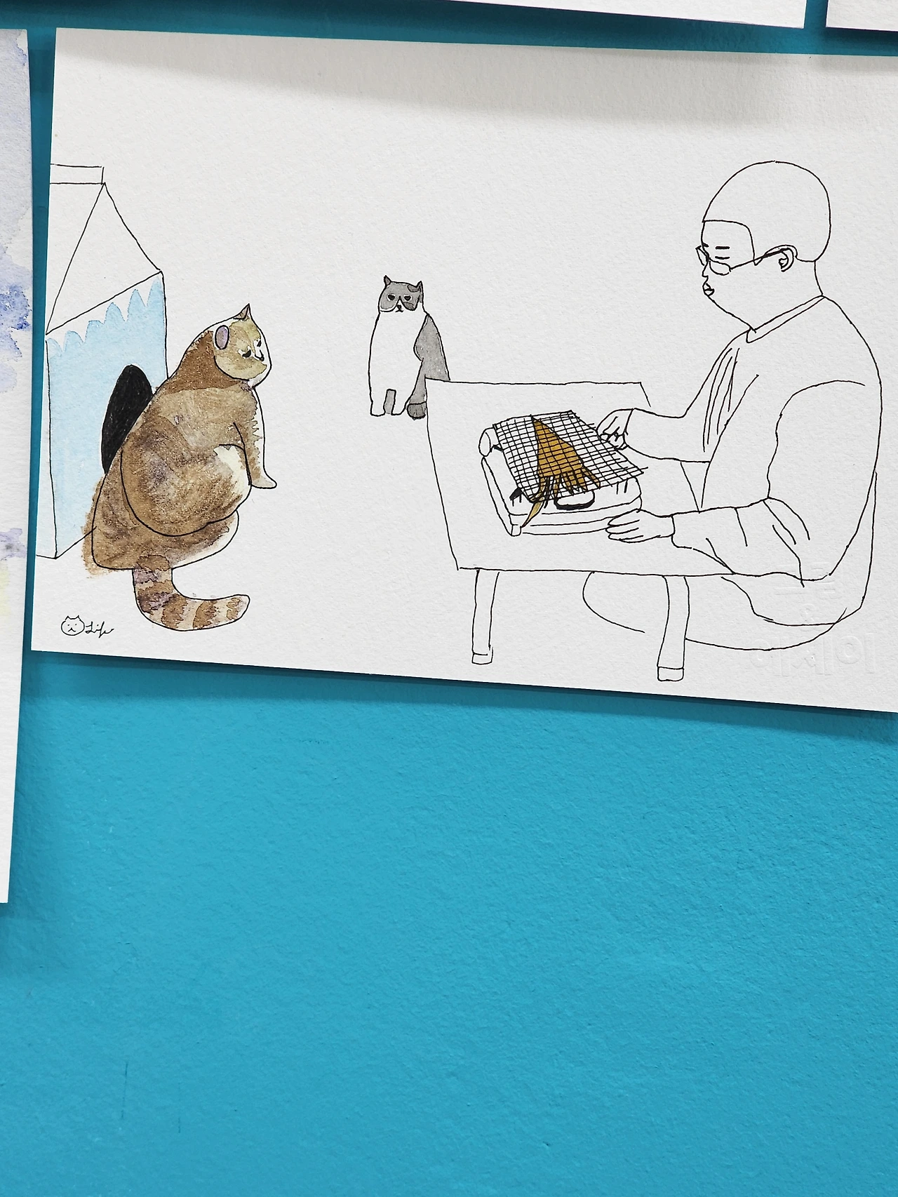 (고양이 그림) 오징어 굽는 날