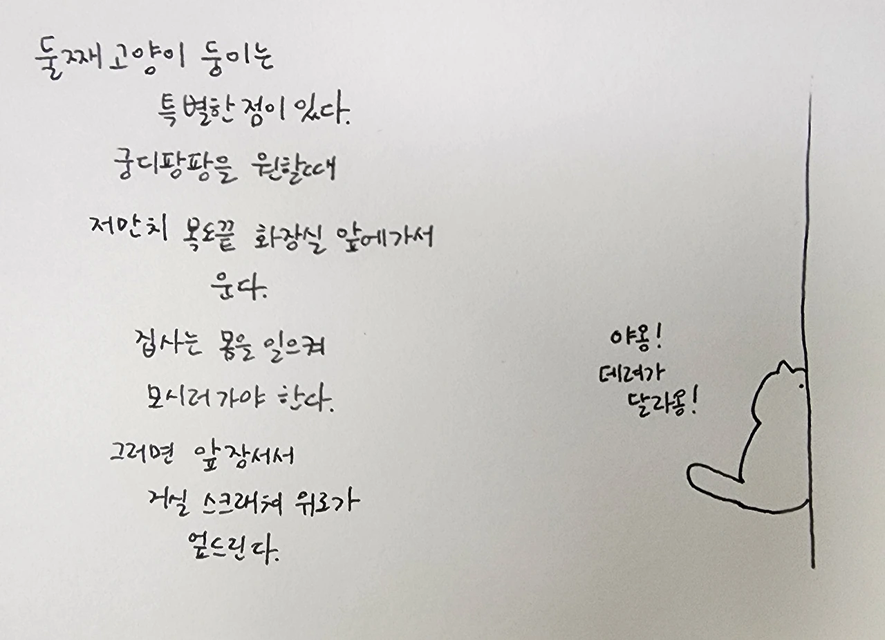 프로 딴짓러. 부업 영어 강사. 글쟁이. 골방댄서. 고양이 아들 세 명, 거북이 네 명, 남편과 삽니다.