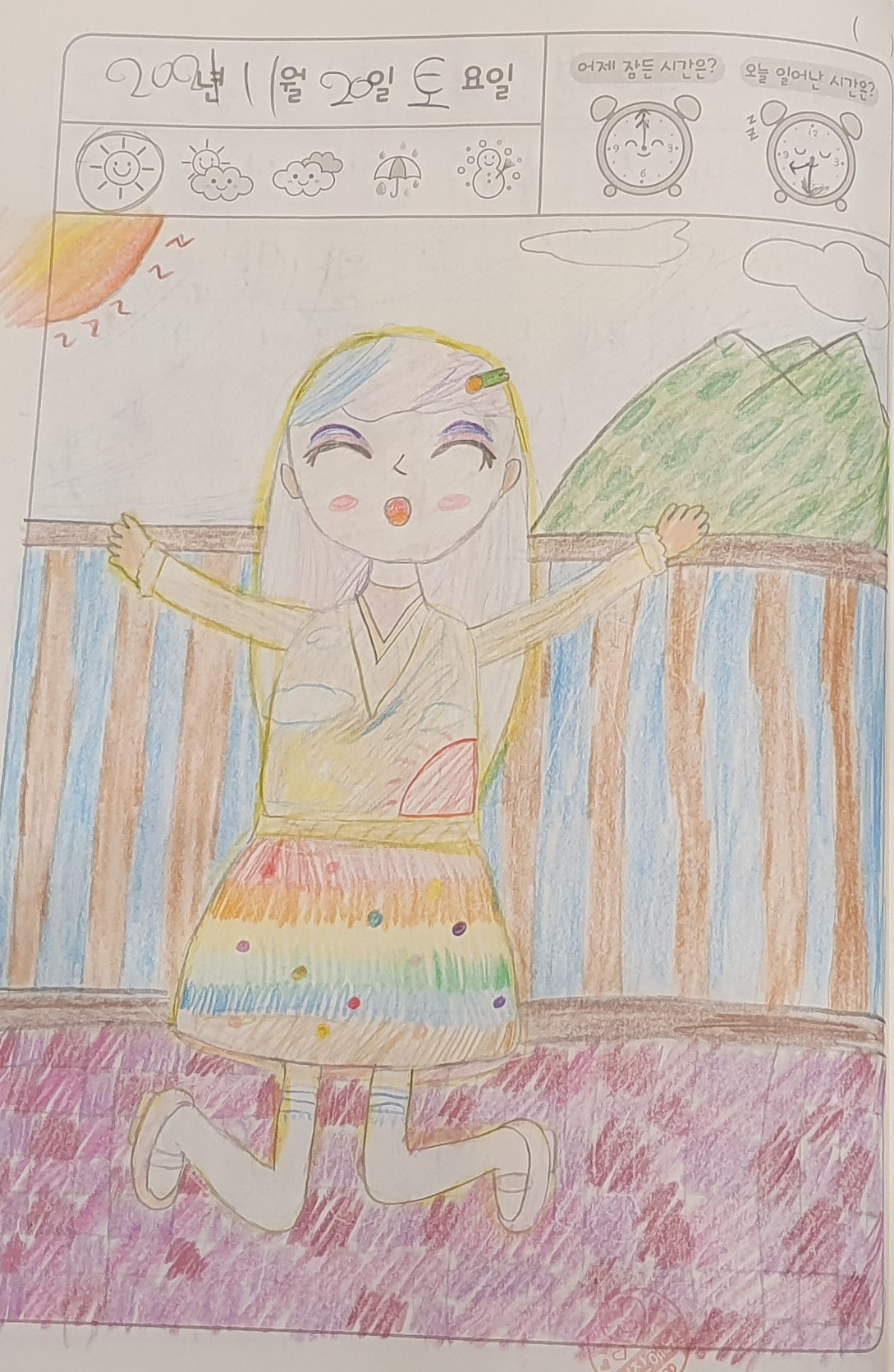 며칠 전 나는 1학년 여자아이 아인이를 만났다. 아인이는 평소 알고 지내던 아이였는데, 또래보다 사고 수준이 높고 학습적으로도 우수한 아이였다. 아인이의 일기를 보니 가장 먼저 눈에 띄는 것이 그림이었다. 아이가 일기를 쓸 때 가장 공들이는 부분이라고 했다. 색감도 좋고, 확실히 다수의 수상 경력이 있는 만큼 그림 실력도 뛰어났다.