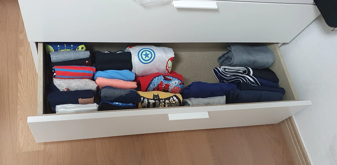 우리 아들의 서랍장. 몇 벌 안 남았다.