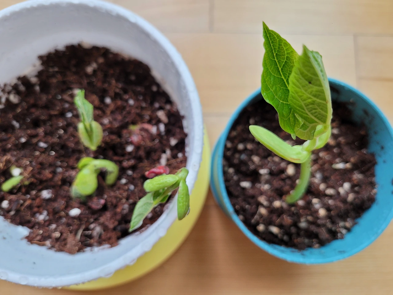 조급해져서 나는 그날 바로 시장가서, 강낭콩 한무더기와 다이소에서 강낭콩 키트를 사와 따로 배양했다. 아파트 텃밭에도 3알씩 3동을 심었다.