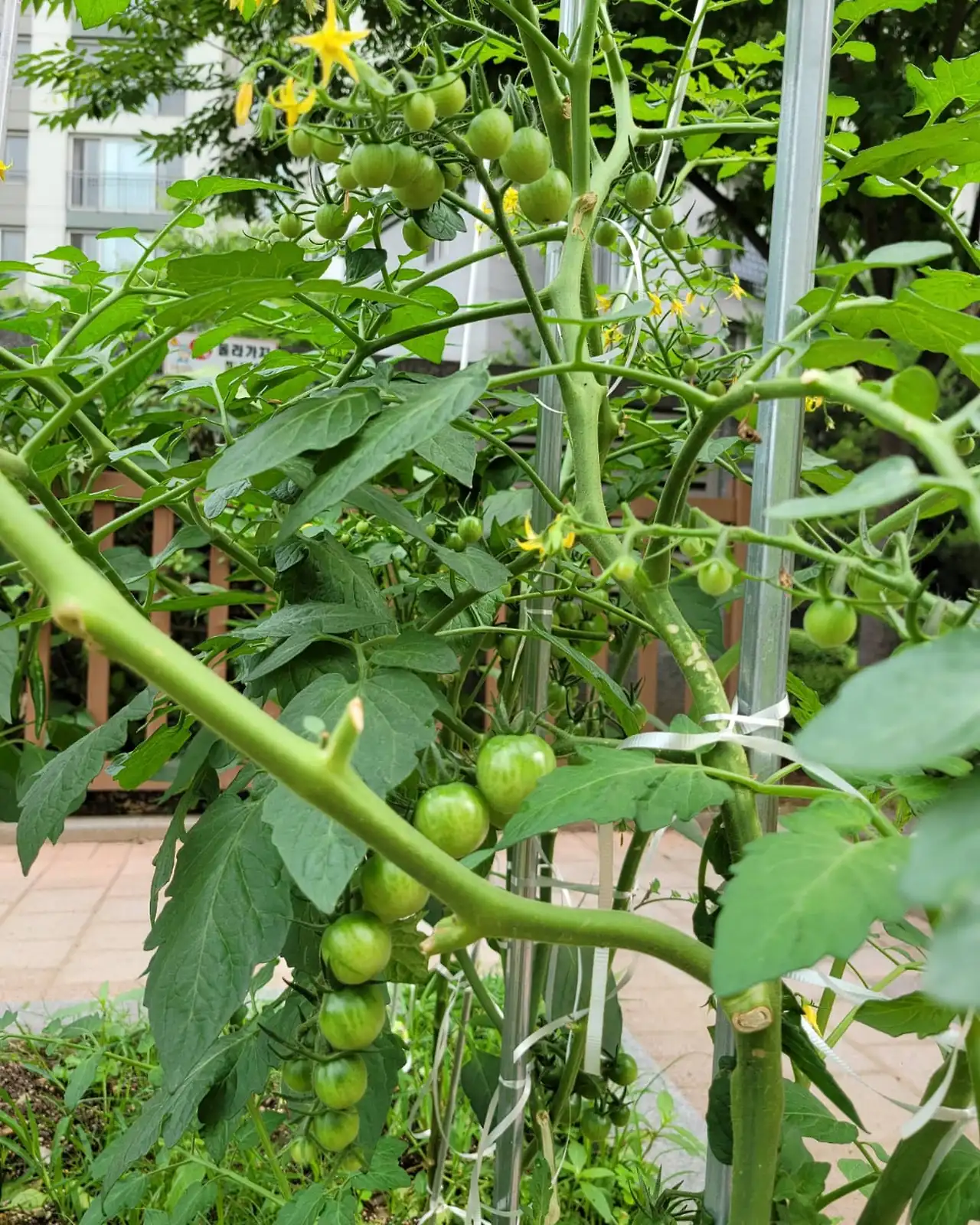 봄에 심은 방울토마토랑 고추는 열매가 주렁주렁 맺혀, 가지가 부러질 정도다.