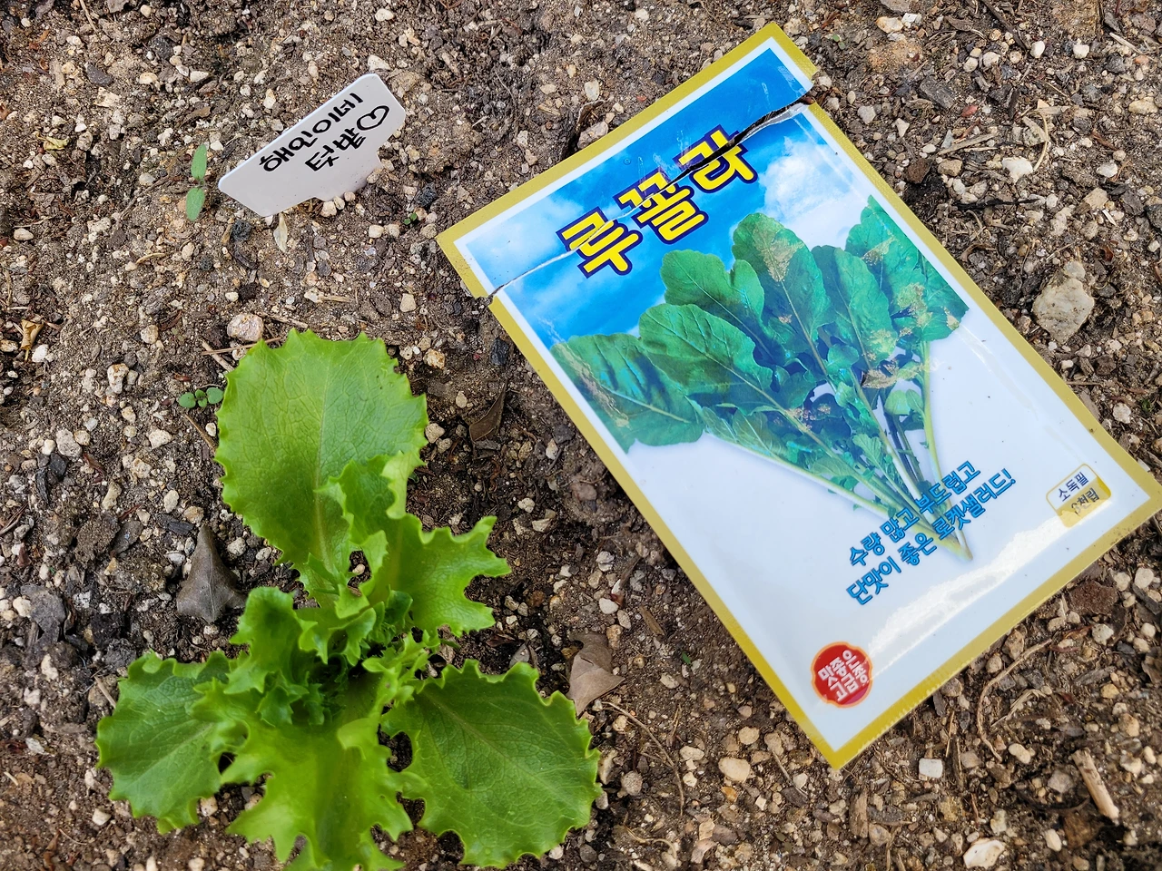 키운 상추 부지런히 먹느라 고기사면 배보다 배꼽이 더 커질테지만 정성들이고 키우는 과정 그 자체가 지금은 자식 하나 더 기르는 것처럼 재밌다.