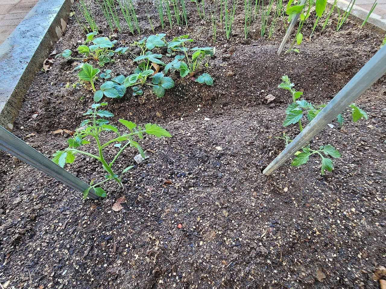 오늘 고추랑 방울토마토(열매 식물) 모종 심고, 루꼴라는 씨를 뿌렸다.