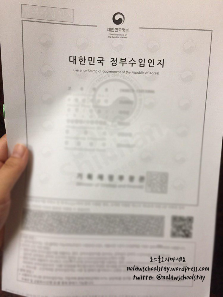 대한민국 정부수입인지 사진. 그 외 부분은 블러처리해뒀다.