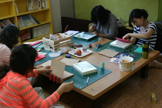 당시 나는 한 아파트 관리동 3층에 위치한 마을 도서관에서 '책 만드는 엄마'라는 소모임을 4년째 운영하는 중이었다. 대여섯 명의 동네 엄마들과 매주 모여 다양한 형태의 책을 손으로 직접 만드는 수업이었는데, 도서관에서 진행한 여러 개의 소모임 중 가장 장수한 모임이었다.