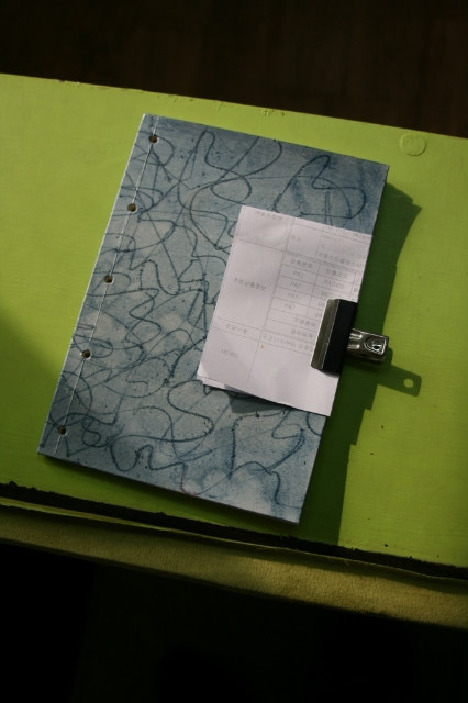 직접 종이에 구멍을 뚫어 제본실로 꿰매는 바인딩 작업.
