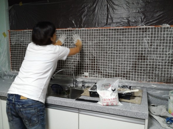 -부엌 타일 작업 : 8,000(타일 0(기부)+백시멘트 4,000+실리콘 4,000)