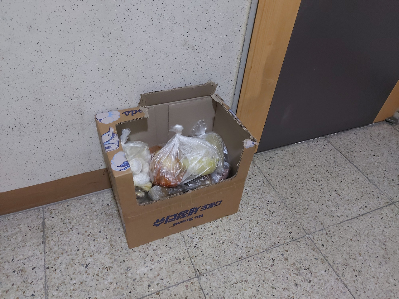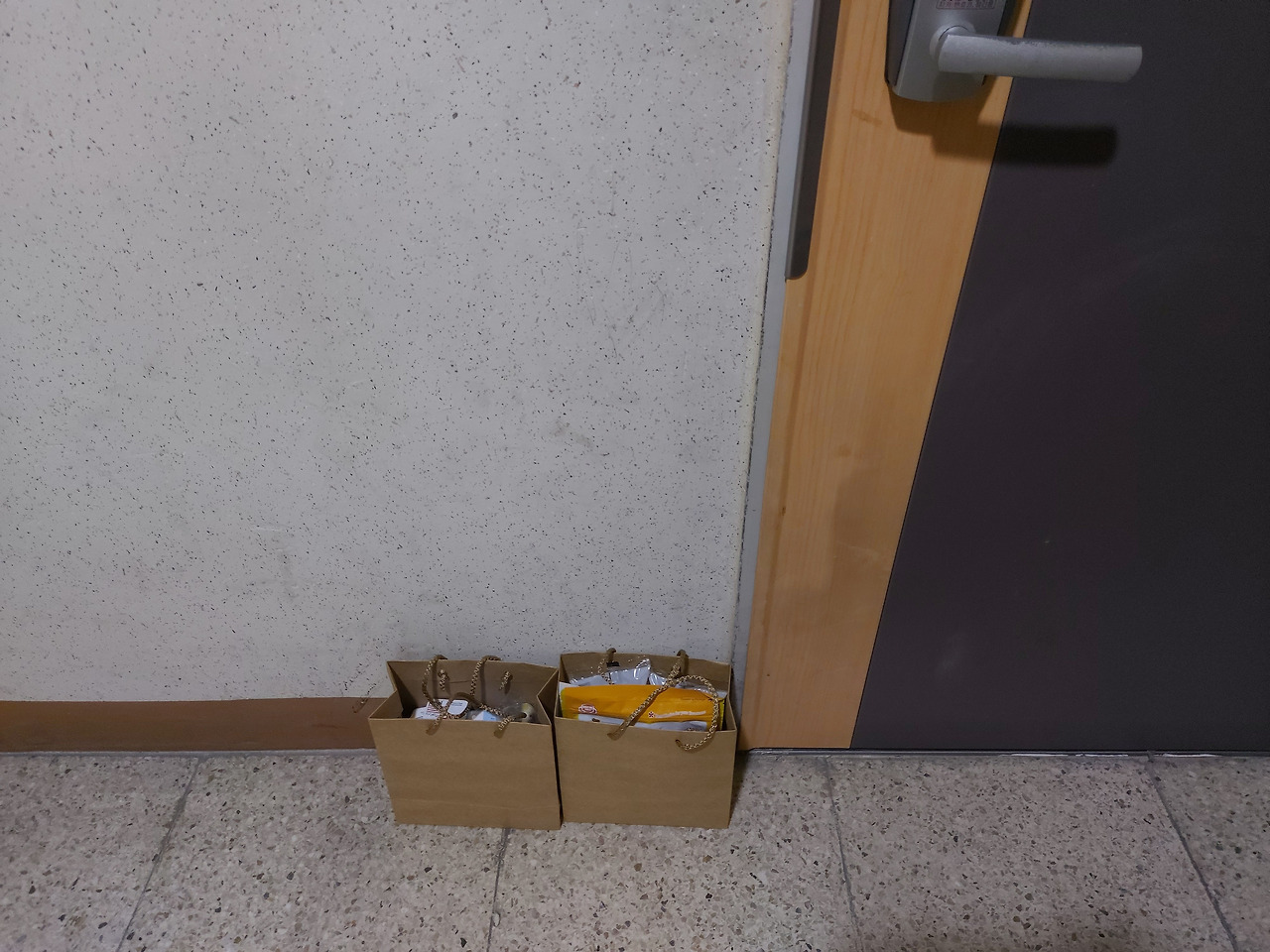 “문 앞에 두고 가요. 그런데 간식을 뭘 이렇게 많이 주셨어요? 잘 먹을게요.”