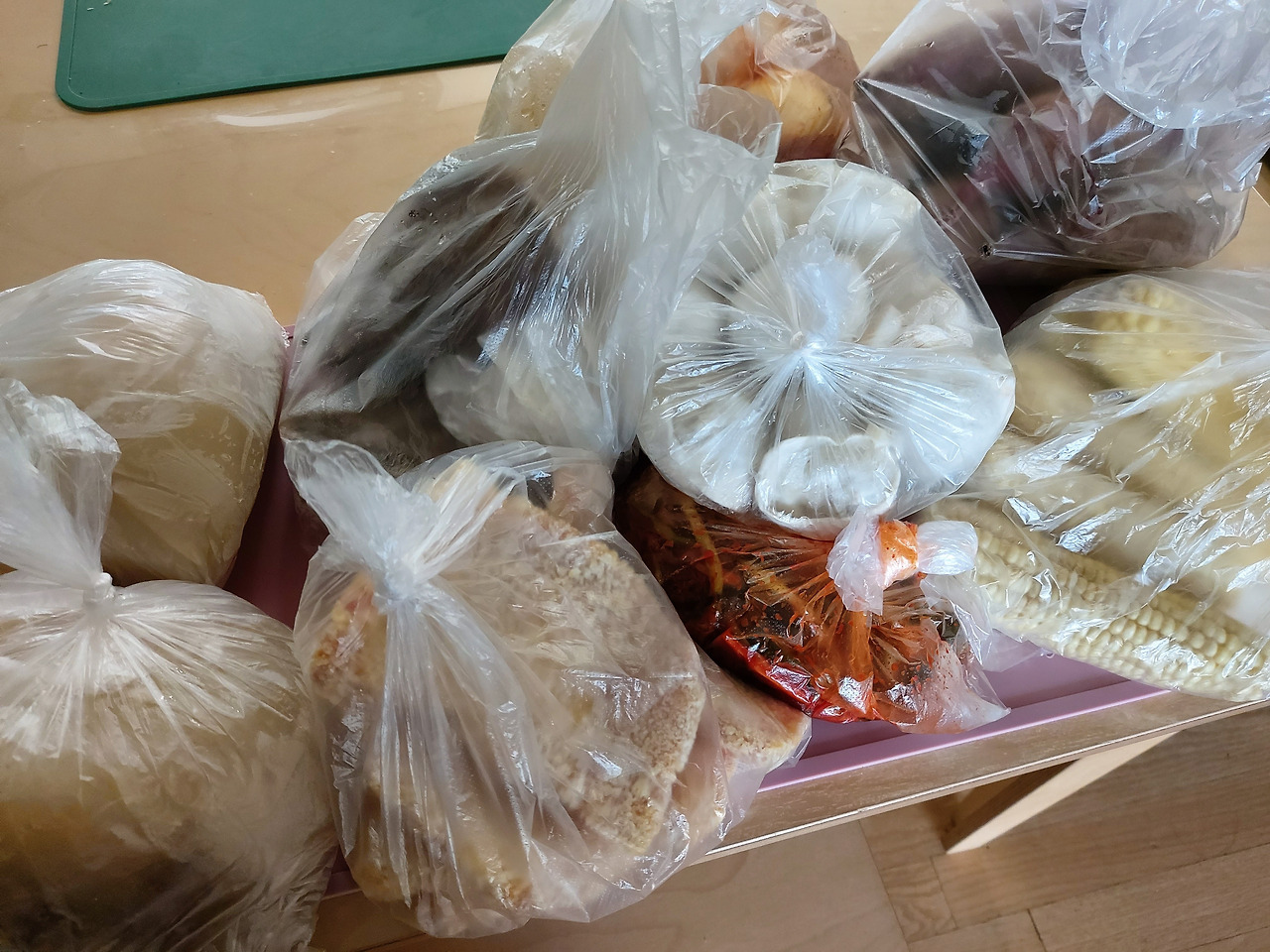 인기척도 느끼지 못했는데 이미 집 앞까지 다녀간 모양이었다. 전화를 끊고 나와 보니 먹거리가 가득 담긴 상자가 문 앞에 놓여 있었다. 아픈 손목으로는 못 들 만큼 상자가 무거웠다. 큰 아이에게 부탁해 상자를 들여와 음식들을 꺼냈다. 곰탕뿐 아니라 찐 옥수수며 고구마, 만두, 떡볶이, 파김치, 돈가스, 시래기 된장까지. 족히 일주일은 먹을 분량이었다.