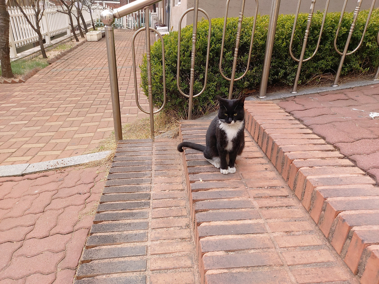 산에 갈 때마다 마주치는 고양이들. 눈치를 보며 경계하다가도 사료를 부어주면 조심스럽게 다가와 먹는다. 아파트 입구 편의점 구역에서 자주 발견되는 고양이.