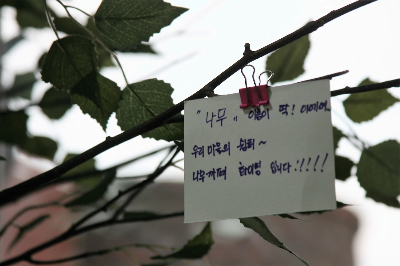 2016년 경기도의 지원을 받아 처음 천장에 냉방기를 달고, 조명이 켜지는 간판을 다는 리모델링을 했을 때. 사람들이 남겨준 응원의 메세지들.