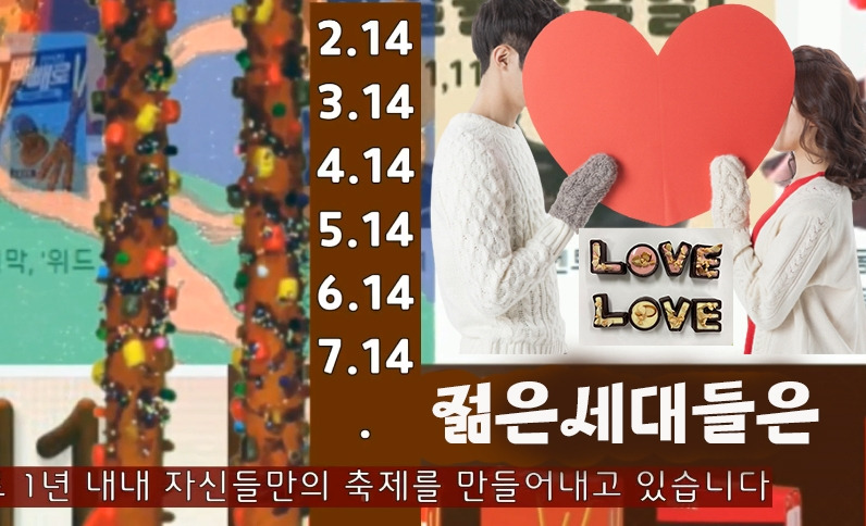 한국에 수많은 전통 축제들이 많은데 청소년들은 왜 이런 정체불명의 빼빼로데이라는 것을 만들어냈을까요? 산업화 이전 농촌공동체에서는 일 년 내내 축제가 있었습니다. 아시다시피 인류가 살아 숨 쉬는 지구별 어느 곳에든 동서고금을 막론하고 축제가 있으며 그것은 현대까지 이어지고 있습니다. 우리나라에선 상고시대인 부여의 영고, 고구려의 동맹, 예의 무천을 들 수 있고, 세계적인 범위에서 펼쳐지는 올림픽이나 월드컵 등도 모두 축제의 범위 안에 듭니다. 그런데 산업화와 도시화로 농촌공동체가 해체되고 마을 사람들이 모여 즐기던 예전의 축제는 더 이상 설 땅을 잃어버리고 말았습니다. 이런 향수를 갖고 있는 세대들은 명절 때 모여 당시를 회상하며 얘기할 수 있는 건덕지라도 있는데, 도시에서 태어난 세대들은 태어날 때부터 HOT나 피카추는 봤지만 그네 뛰고 강강술래 하는 건 교과서 안으로 들어가야 볼 수 있는 모습들이었습니다. 인간은 놀이하는 인간_호모루덴스이자 축제하는 인간_호모페스티부스입니다. 과연 이 세대들은 그 뒤 어떻게 되었을까요? 이들은 궁리 끝에 아니 심심해서 그들만의 놀이와 축제를 만들어냅니다. 11월 11일엔 빼빼로를 먹고, 밸런타인데이 때는 초콜릿을 주고받으며, 짜장면데이 때는 검정 의상을 입고 짜장면을 먹으며 그들만의 축제를 만들어낸 것입니다.