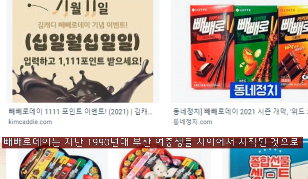 해마다 빼빼로데이가 되면 점잖아 보이는 어르신들께서 늘 그렇듯이 못마땅한 표정으로 '유감'을 많이 표합니다. 하지만, 당신도 11월 11일 11시 11분 11초에 빼빼로를 드시면 빼빼해질 수 있습니다. 이건 순전히 숫자로 장난치는 게 분명하지만 원래 축제나 문화는 이런 놀이로부터 탄생하였습니다. 놀이하는 인간이라는 개념을 만들어낸 『호모루덴스』의 저자 요한 하위징아는 ‘놀이가 문화에서 나온 게 아니라 거꾸로 모든 문화는 놀이에서 기원했다’고 주장합니다. 11월 11일 빼빼로데이는 놀이로부터 탄생하였습니다. 이에 대한 여러 가지 설이 있는데 1993년경부터 부산의 여중생들이 매해 11월 11일이면 빼빼해지고 싶어 빼빼로를 먹던 풍습에서 유래되었다는 이야기가 전해집니다. 빼빼로데이는 한국의 여중생들이 만들어낸 토종 페스티벌입니다. 빼빼로 모양의 제품은 일본의 포키라는 상품이 원조입니다. 이걸 본떠 국내 기업에서 ‘빼빼로’ 제품을 만들었는데 청소년들이 빼빼로처럼 늘씬해지고 싶은 욕망을 담아 데이(Day)를 추가하여 오늘날의 빼빼로데이가 된 것입니다.