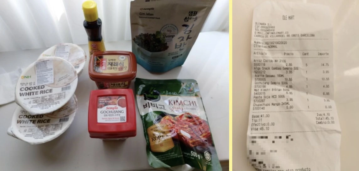 한가득 장을 봤더니 45.1유로가 나왔다.