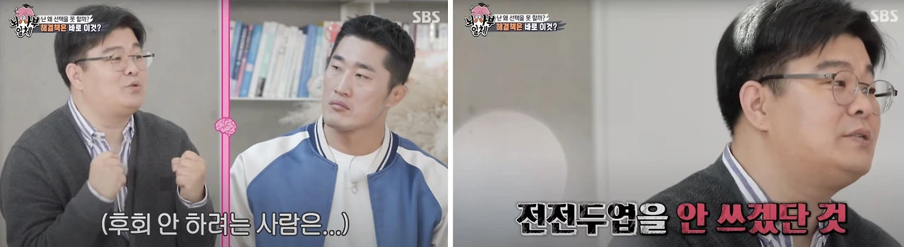 SBS집사부일체에서 뇌과학자 정재승박사는 ‘후회는 고등한 뇌의 기능이다. 후회를 한다는 것은 더 나은 선택을 하며 인간다운 삶을 살기 위한 것이다. 후회를 안 한다는 건 인간답게 살지 않겠다는 선언과 같다’라고 이야기한다.