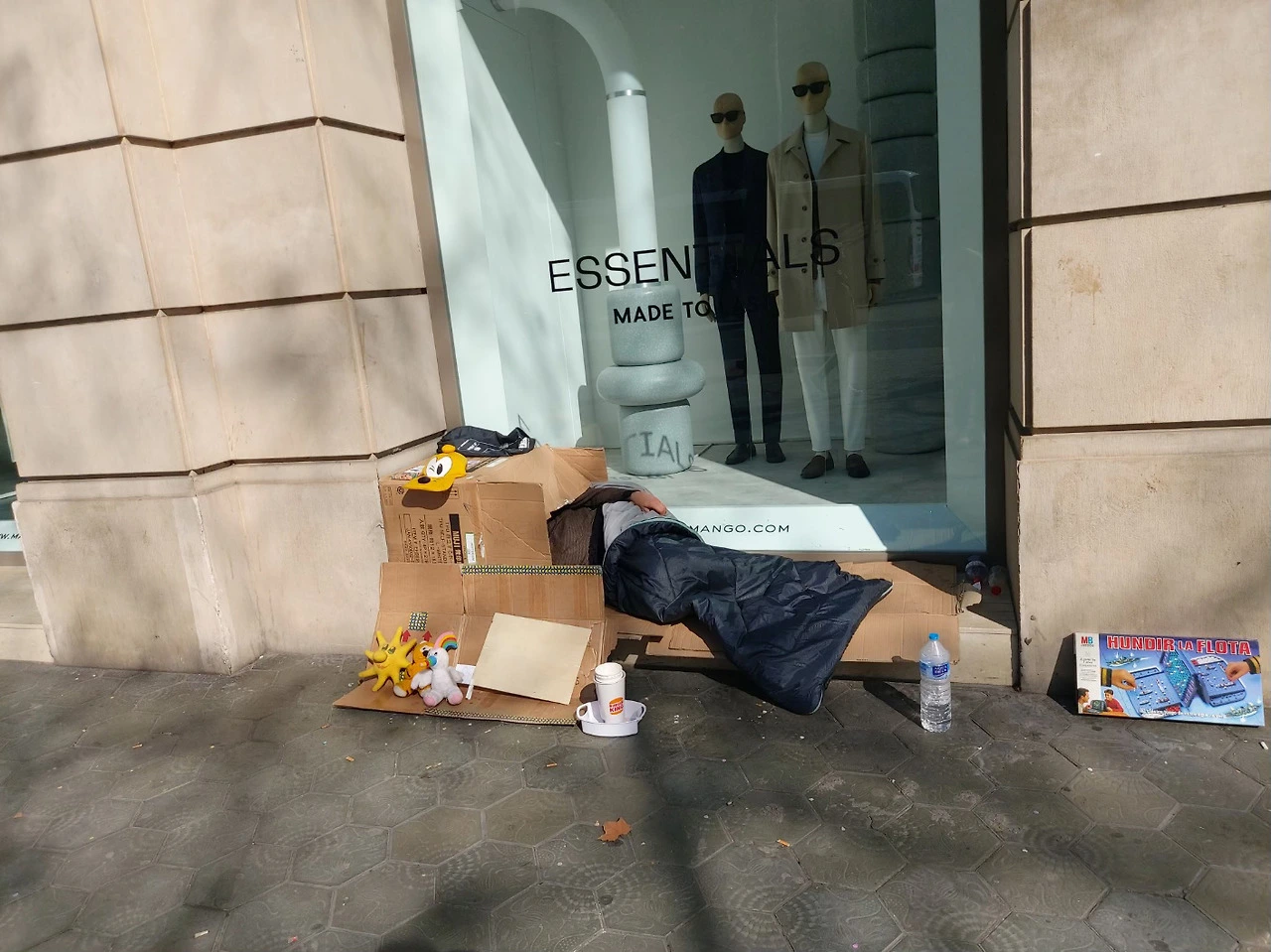 그때 으리으리한 건물 앞에 누워서 자고 있는 바르셀로나 자유인의 모습이 눈에 들어왔다.
