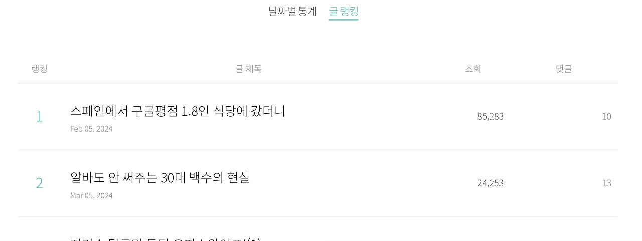 실제로 내 글 중에서 조회수 1등인 글이 이때 나왔다