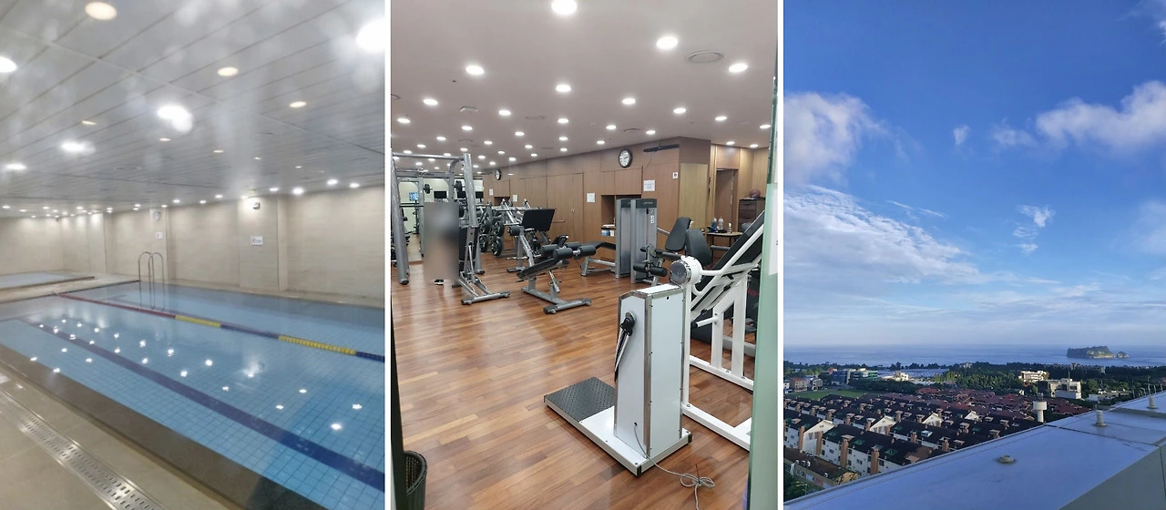 지하에는 호텔 투숙객이면 7천 원에 실내수영장, 헬스장, 사우나를 이용할 수 있다.