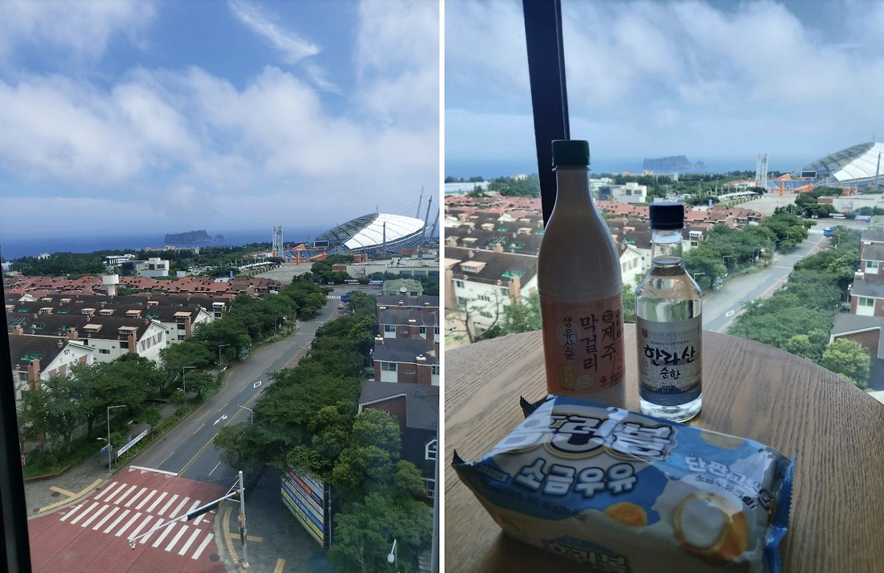 멋진 뷰를 보면서 제주 막걸리도 한잔 마셔줬다.