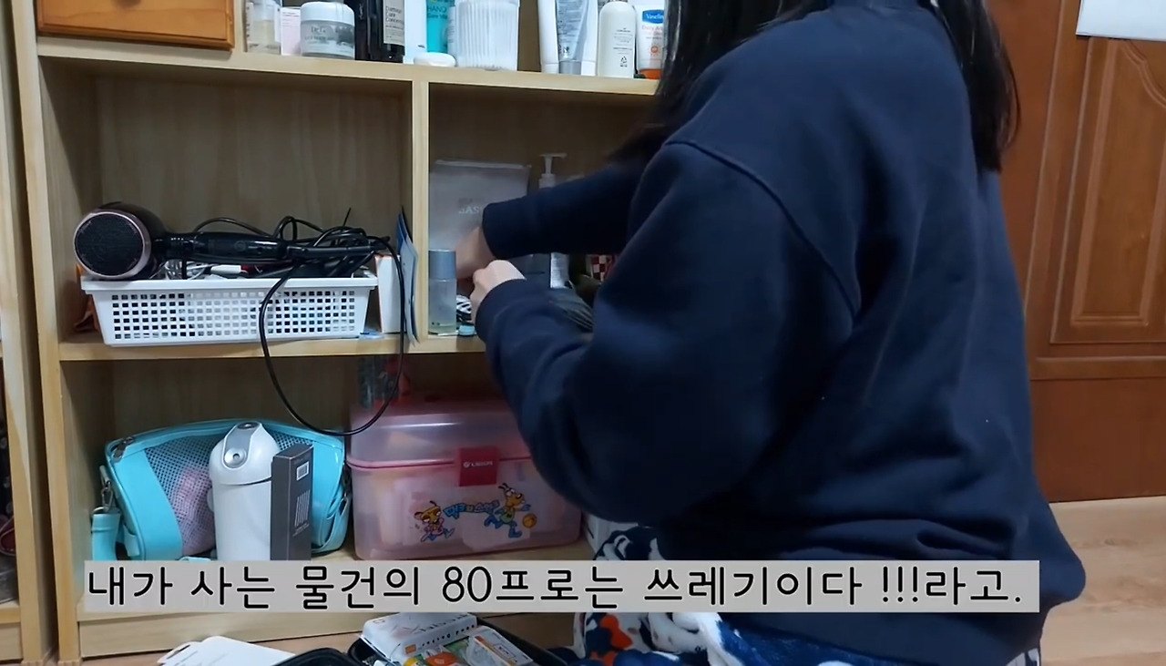 소유하고 싶은 욕구, 결핍을 물건으로 채우려고 했던 생각, 스트레스를 소비로 해소하고자 했던 마음이 얼마나 어리석었는지를 쓰지 않는 물건 더미를 보며 깨달았다. 이제는 쇼핑을 하고 싶을 때마다 ‘내가 산 물건의 80프로는 쓰레기가 된다’라고 생각한다며 꼭 필요한 건지 한 번 더 생각한다. 사고 싶은 물건을 장바구니에 담아놓고 마음쇼핑을 한다. 그러면 꼭 산 것 같은 기분이 들어서 쇼핑욕구가 좀 해소가 됐다.