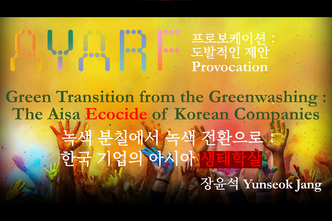 내일, 한 시 정각에 아야프 최종 발표가 있습니다. 발표제목은 ‘녹색 분칠에서 녹색 전환으로: 한국 기업의 전 지구적 생태학살’입니다. (15분,,)
