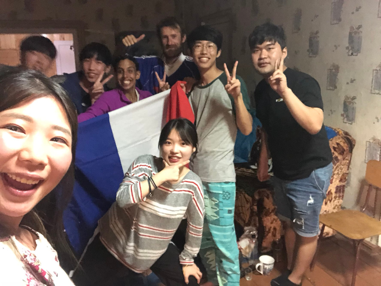 그리고 유쾌한 프랑스 부부도 만났다. 이름을 까먹었지만, (쟝과 시몬이라 해둘까) 밤새 찐하게 놀았다. 하필이면 그날이 또 대망의 러시아 월드컵 결승전이었다. 프랑스 vs 크로아티아, 우리는 프랑스를 응원했다. 쟝이 프랑스 국가대표 유니폼을 입은 채 가방에서 큼지막한 국기를 꺼냈으니, 응원하지 않을 수 없었다고 하는 게 맞겠다. 축구경기가 시작되고 보드카와 함께 우리는 경기를 지켜봤다. 프랑스 골문으로 공이 들어가자 분위기는 싸해졌다. 모두들 프랑스가 이기기를 간절히 바랬다. 쟝의 표정을 봤다면 바로 그 이유를 알아채리라.
