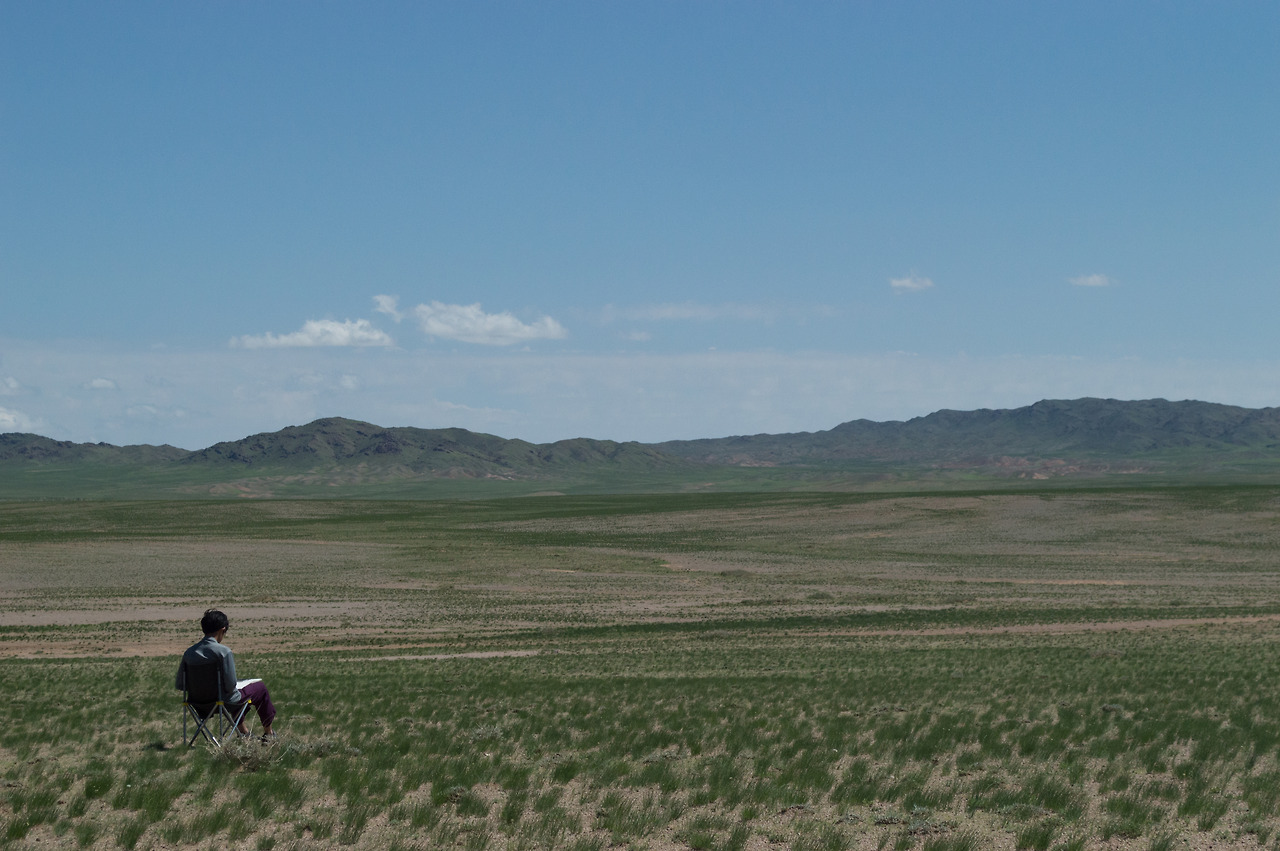 고비에서 나는 방랑 화가처럼 그림을 그렸다. 지나가던 누가 그 모습을 찍어주었다. 여행을 마치고 돌아와 몇 개월 후에 메일로 사진을 받았고 고비에서 유일하게 남은 사진이 되었다.