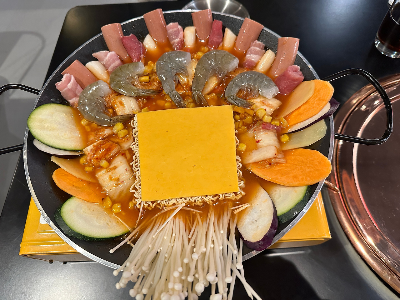 한국식당이니 당연히 한국분이 운영할 거라 생각한 내 선입견이었다. 일식, 베트남식, 태국식은 해당국가 출신이 아닌 아시아인이 운영하는 식당이 많지만 한식당을, 그것도 주인부터 직원까지 전부 타국인인 케이스는 꽤 드물기 때문이다. 의도치 않게 자국민을 만난 남편이 중국어로 직원분과 대화를 이어갔고, 우리는 부대찌개를 주문했다.