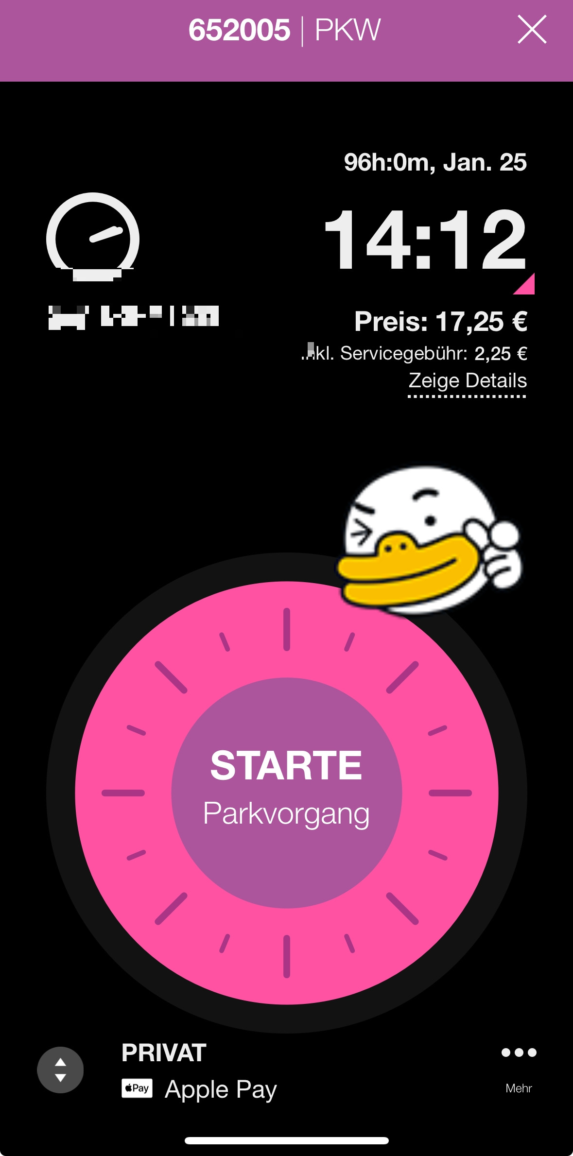 주차장 번호와 차번호를 입력하고, 간단히 전화번호와 지불방식을 지정하면 바로 주차를 시작할 수 있다. 동그란 다이얼 중간의 'Starte(시작해)'를 터치하면 주차가 시작되고, 다이얼을 돌리면 주차시간이 증가한다. 예상 주차시간을 설정하면 주차비도 미리 계산해 볼 수 있다. 주차가 끝나면 'Stoppe(멈춰)'를 누르면 된다.