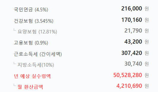 월 예상 실수령액: 421만 원