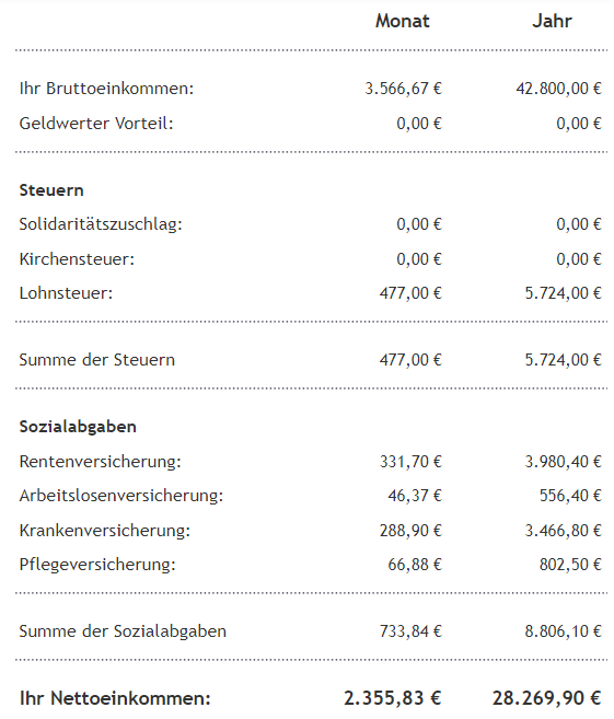 연봉 6000만 원 (약 42800유로)를 기준으로 비교해 봤다.