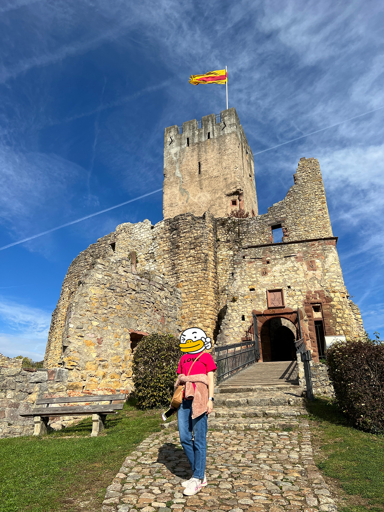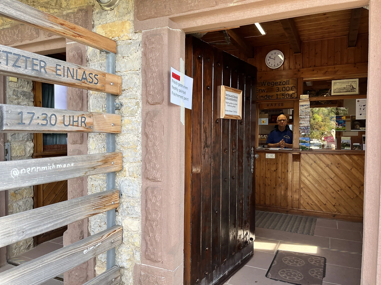 성은 뢰어라흐 시에서 최대한 망가지지 않게 보수/관리하고 있으며 일정 높이 이상(고성) 오르려면 입장권을 구매해야 한다. 인상 좋은 할아버지께서 '통행료'라는 귀여운 팻말을 달아두고 1인당 3유로씩 받고 계셨다. 아이는 1,50유로다. 물가 비싼 요즘 커피 한 잔 값도 안 되는 입장료라니, 기꺼이 지불할 만하다. 당연히 카드는 안 된다.