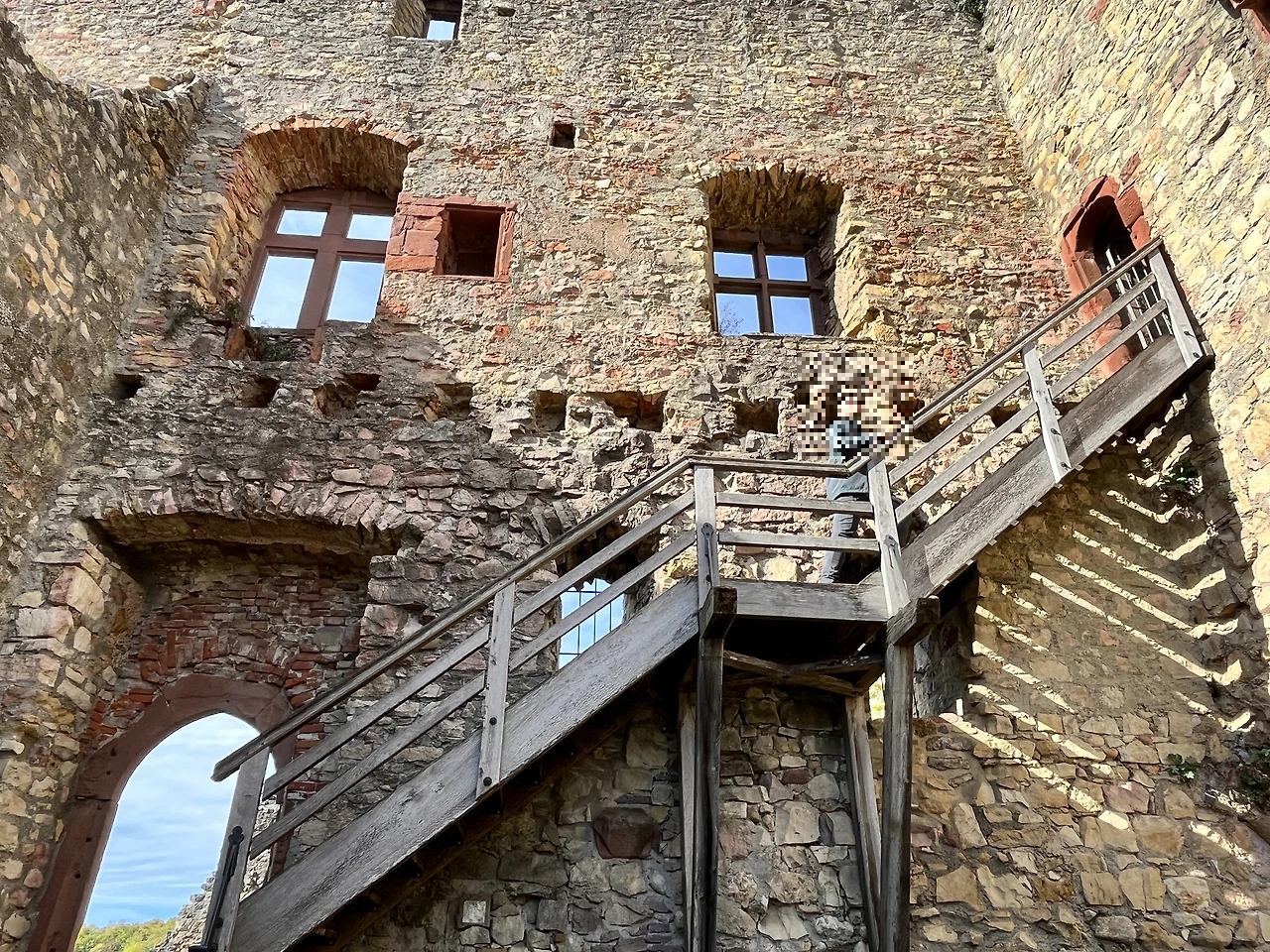 성은 말 그대로 '형체만 남았다'라고 할 정도로 돌덩이 뼈대뿐이었지만, 빈 공간에 상상력을 덧대어 과거에 활발히 사용했을 모습을 떠올리니 나름 웅장하고 멋있을 것 같았다. 계단을 올라 고성의 꼭대기에 오르면 뢰라흐 시내를 한눈에 조망할 수 있다.