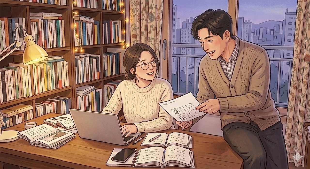 나는 하고 싶은 것도 많고 해야 할 일도 많은 40대의 일하는 엄마이다. 남편은 그런 나를 항상 지지해 준다. 글을 쓴다고 했을 때도 응원을 아끼지 않았다. 얼기설기 엮은 민낯의 문장들을 들이밀어도 남편은 싫은 내색 한번 없이 꼼꼼히 읽고 피드백을 준다. 글의 구성, 문장 호응, 맞춤법까지 세심하게 짚어 주면서 마지막엔 따듯한 감상평도 잊지 않는다.