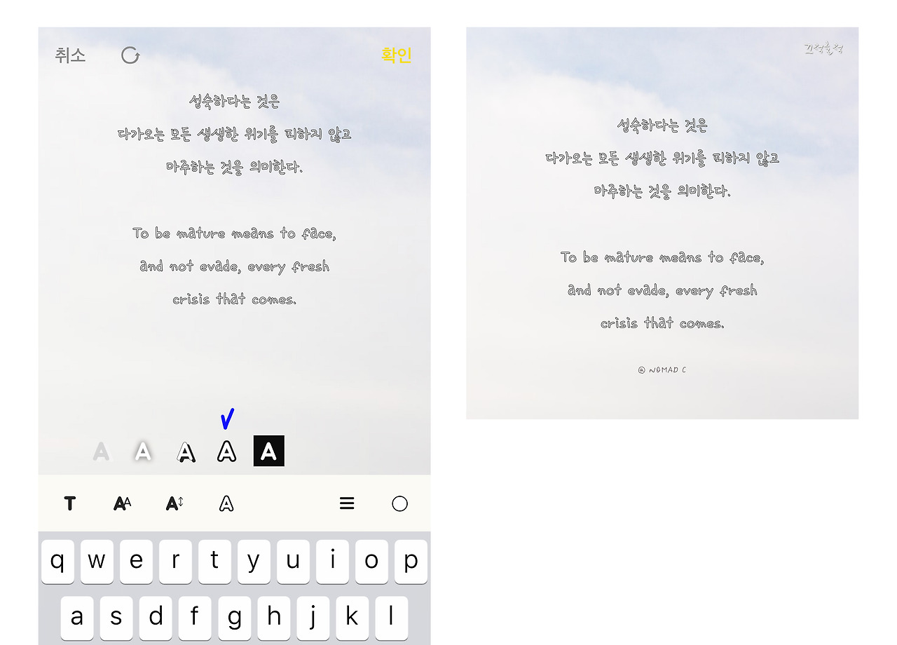 새로운 쉐도우 타입이 생겼다. 텍스트에 바탕선 타입이 생겼는데 너무 예쁘다. (다 예뻐.. 다 만족해..)