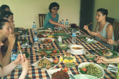 강습이 끝나고 모두 함께 테이블에 둘러앉아 각자 만든 음식들을 앞에 놓고 시식 시간을 가졌다. 호주 모녀가 만든 채식으로 새로이 탄생한 발리식 요리를 먹으며 다들 엄지손가락을 치켜세웠다. 뿌스파가 선포했다. “앞으로 수업 메뉴에 넣어야겠는걸!”