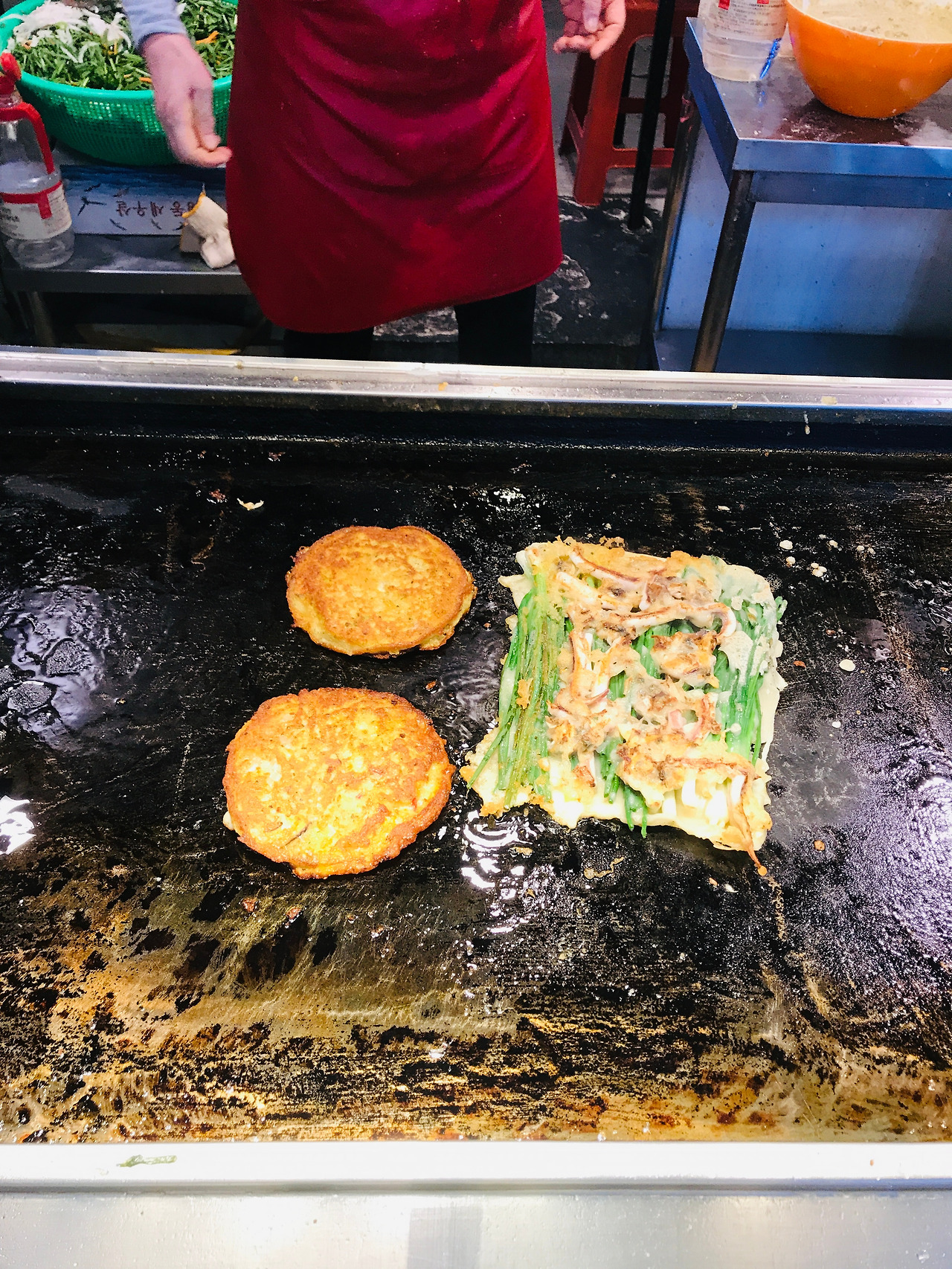 전은 한국식 피자라고 할 수 있는데요. 부산의 해물파전은 특히 오징어, 바지락, 홍합 등 해산물이 푸짐하게 들어 있는 것으로 유명해요.
