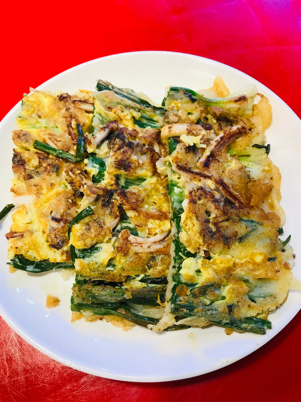 각종 채소와 해산물이 잔뜩 들어간 겉은 바삭 속은 촉촉하게 구어낸 갓 구운 해물파전을 한 입 먹으면 접시가 다 비워질 때까지 젓가락질을 멈출 수 없을 거예요.