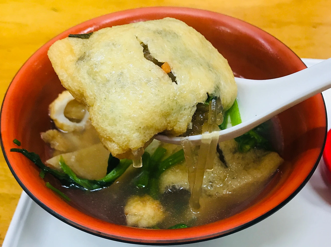 어묵탕의 부드러운 맛과 유부 주머니 안의 잡채 양념이 함께 조화를 이루어서 감칠맛을 만들어 낸답니다.